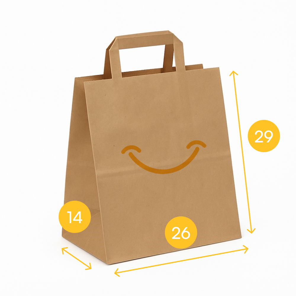 Torba papierowa brąz 26x14x29, płaski uchwyt, 70 g